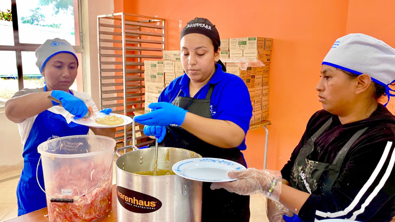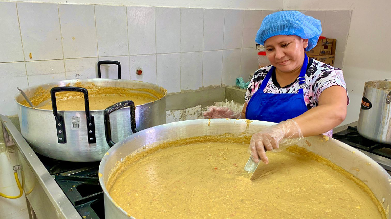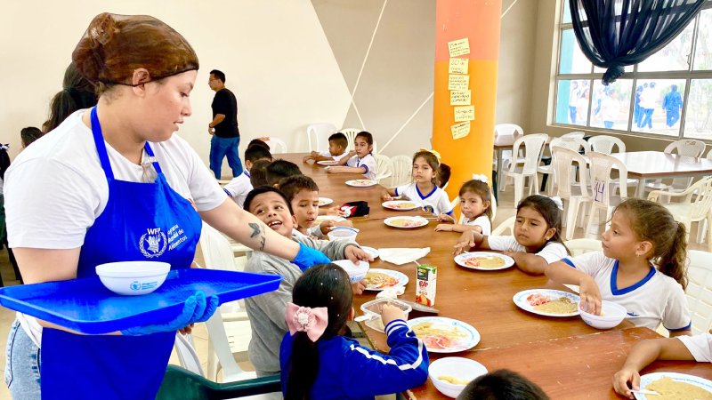 En este proyecto de escala nacional, los productos utilizados vienen directamente de los pequeños productores, promoviendo la comercialización local. “El menú es preparado por nuestras nutricionistas, ofreciendo una amplia variedad que se repite cada 3 semanas; contiene vegetales, carbohidrato y proteína”, indicó Narcisa Villavicencio, monitora de Campo del Programa Mundial de Alimentos.