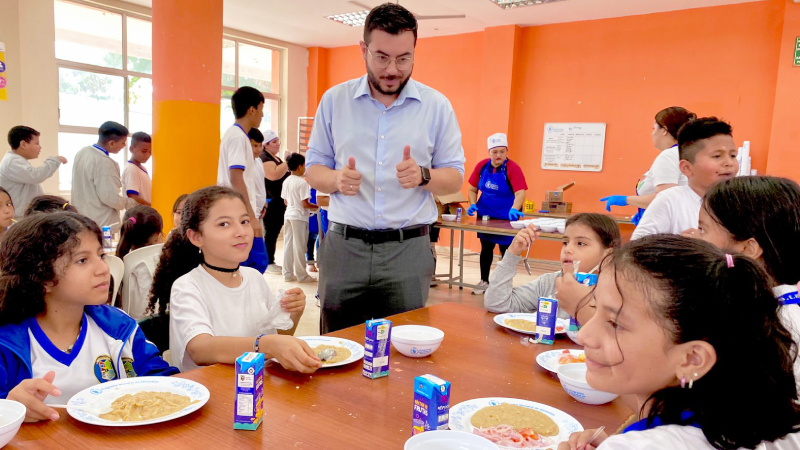 El coordinador Zonal 4 de Educación, Maximiliano Nuñez Tomaselli, compartió con los estudiantes .“Este nuevo modelo es gracias a un acuerdo estratégico firmado en junio de 2024 entre Educación y el PMA que, en su fase inicial, se implementará en 6 provincias, entre ellas Manabí, con una inversión de más de 2.5 millones de dólares”.