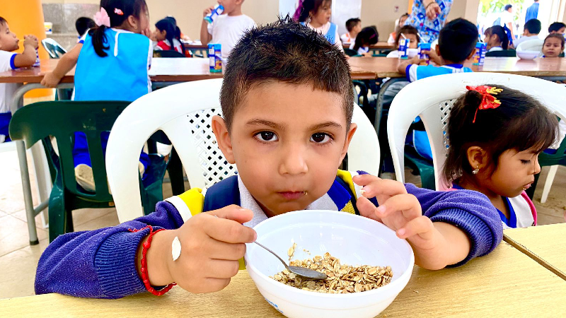 “Hemos diseñado un desayuno nutritivo, hoy ofrecemos una cazuela de atún con ensalada fría, además de granola con guineo, complementado con la bebida de la colación escolar”, expresó Jean Pierre Baird, chef del programa.