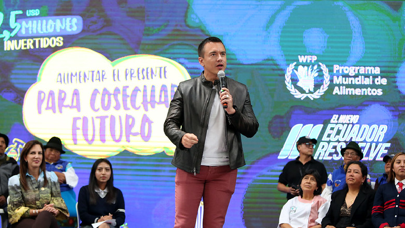 Este miércoles 19 de febrero, el presidente Daniel Noboa Azin visitó el cantón Cayambe en donde se dio a conocer la implementación del nuevo modelo de Alimentación Escolar Territorial. Esta iniciativa desarrollada por el Gobierno Nacional, a través del Ministerio de Educación en coordinación con el Programa Mundial de Alimentos (PMA) garantizará la entrega de raciones frescas y nutritivas a más de 20.000 niños y niñas en nueve cantones del país.