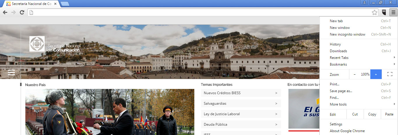 Haga clic en el Botón de control de Chrome, seleccione la opción de Zoom y después seleccione "+".