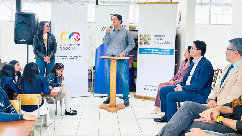 Cobijada bajo un inmenso cielo azul y rodeada de verdes montañas, se levanta la Unidad Educativa Pichincha, ubicada en Lloa, parroquia rural de Quito conocida por su belleza natural y paisajes andinos. En este plantel, se realizó la entrega de obras ejecutadas en coordinación con el Ministerio de Educación y la Fundación Unidos por la Educación, a través del aporte del promotor Cervecería Nacional.