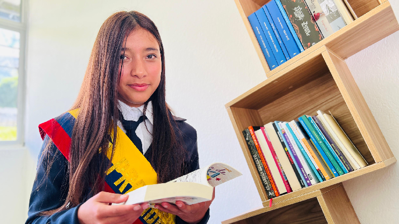 Con una gran sonrisa y en medio de sus libros favoritos, Madeley, estudiante de la Unidad Educativa Pichincha, destacó: “Este valioso aporte no solo enriquece nuestras mentes y corazones, sino que abre nuevas puertas al conocimiento; gracias por sembrar el futuro a través de los libros”.