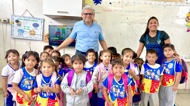 Uno de sus proyectos más emblemáticos es “Patios Inclusivos”, un espacio innovador diseñado con estaciones temáticas que promueven el aprendizaje lúdico e integrador, asegurando que todos los niños y niñas, sin excepción, encuentren su lugar y su ritmo en la escuela.