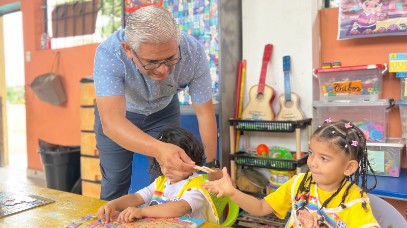 Pero su vocación no se queda en las escuelas. Durante cinco años, también formó a futuros profesionales como docente de Diseño Gráfico en la Universidad Estatal de Milagro. Su formación en Diseño de Interiores y su título de Magíster en Gerencia Administrativa le han brindado las herramientas para liderar con creatividad, estrategia y corazón.