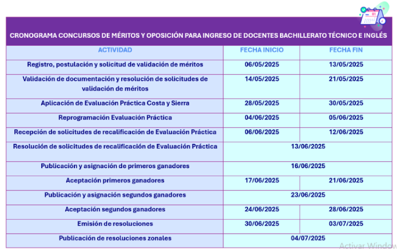 El Ministerio de Educación, en cumplimiento de la normativa legal vigente, inicia un nuevo Concurso de Méritos y Oposición para el ingreso de docentes al magisterio fiscal en las especialidades de Bachillerato Técnico e Inglés.