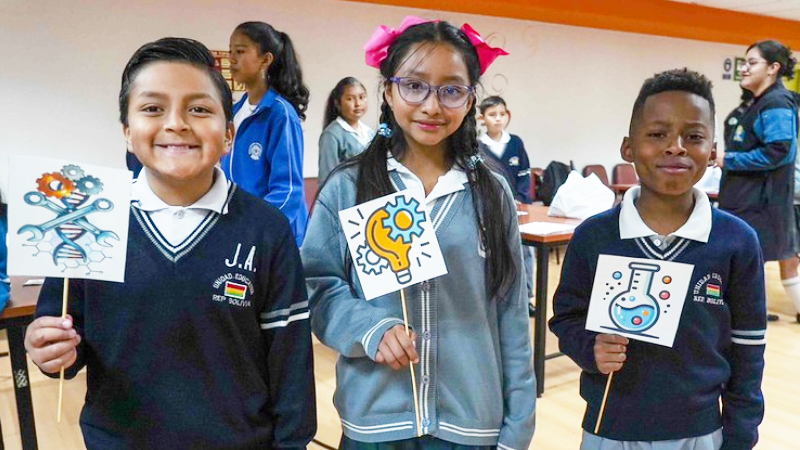 En línea con esta visión, se desarrolló el evento “Eugenia y la Ciencia”, al cual asistieron autoridades de Educación, representantes de Childfund y 180 Estudiantes de Educación General Básica Media (5to, 6to y 7mo grado) de 5 instituciones educativas de Quito. El evento estuvo estructurado en dos momentos diseñados para incentivar el interés de las y los estudiantes por la ciencia y la tecnología, con un énfasis especial en la participación femenina en estas áreas.