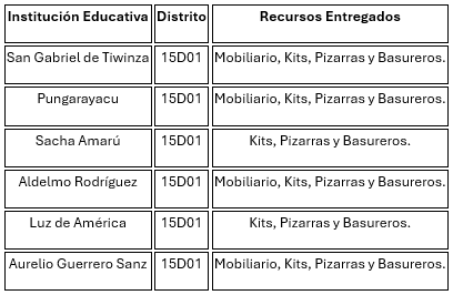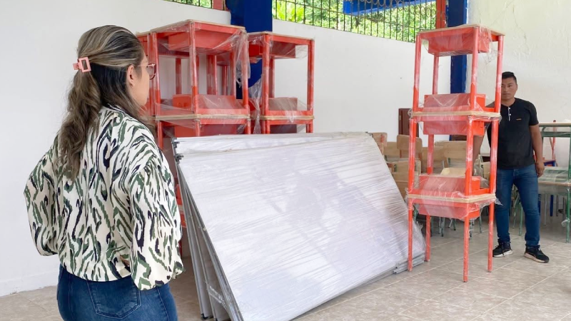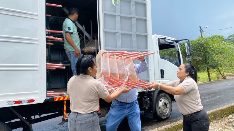 - Mobiliario Principal: Se entregaron pizarras, pupitres, mesas, y escritorios para adecuar las aulas y espacios de trabajo.