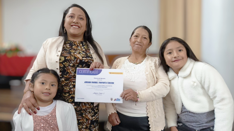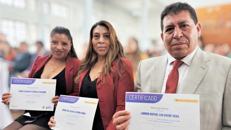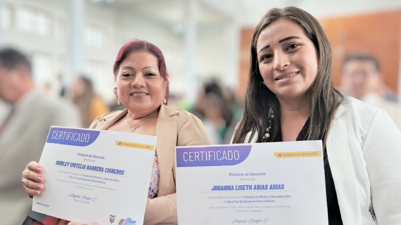 Elizabeth Carrillo, una de las docentes beneficiadas, compartió su experiencia: “Estoy muy feliz por este logro. Antes trabajaba en Quito y viajaba todos los días, pero ahora puedo regresar a mi ciudad natal Píllaro y estar junto a mi familia. No se rindan, los sueños y las metas sí se cumplen”.