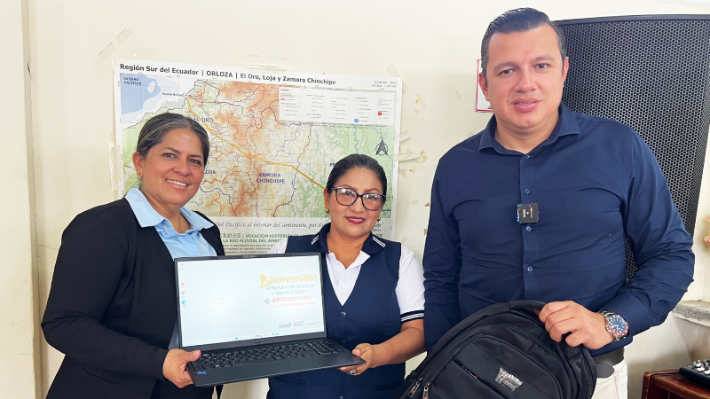 En el marco del programa “Reducción de la Brecha Digital en el Sistema Educativo”, el Ministerio de Educación, Deporte y Cultura realizó la entrega de 20 kits tecnológicos destinados a docentes de escuelas unidocentes y bidocentes de los cantones Pasaje, Chilla y El Guabo. La inversión asignada asciende a USD 22.700, con el propósito de fortalecer la enseñanza en zonas rurales.