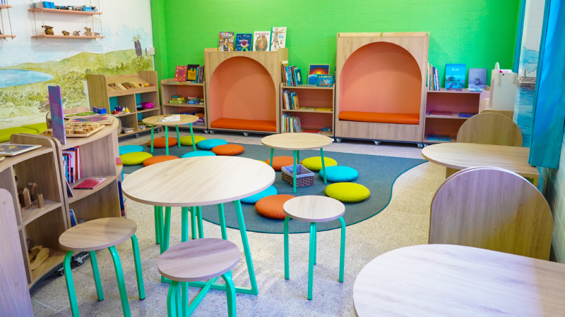 Para la habilitación de la Ludobiblioteca Galápagos, se realizó una intervención integral en la funcionalidad de su infraestructura, mejoramiento del sistema eléctrico y aire acondicionado, dotación de mobiliario diseñado específicamente para las necesidades del lugar y de sus usuarios, así como murales inspirados en el paisaje de las ‘Islas Encantadas’.