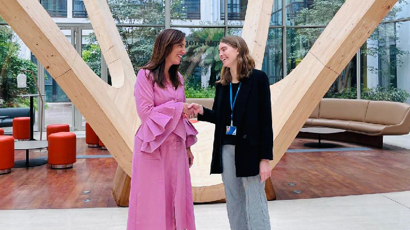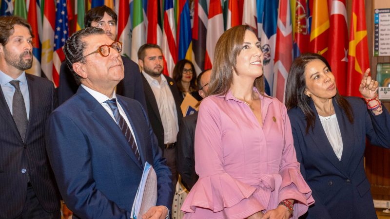 La mañana de este viernes 9 de mayo, la vicepresidenta de la República, Cynthia Gellibert, y la ministra de Educación, Alegría Crespo, visitaron la sede de la Organización de las Naciones Unidas para la Educación, la Ciencia y la Cultura (Unesco) en Paris y mantuvieron una reunión de alto nivel con los representantes de este organismo internacional para establecer alianzas y acuerdos en favor del desarrollo educativo y cultural del Ecuador.