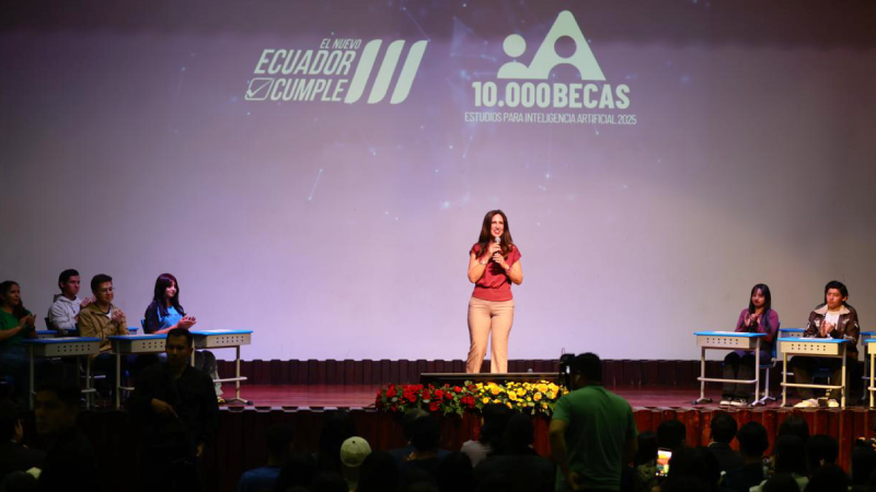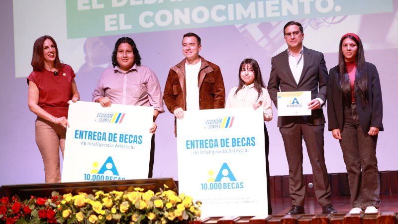 El Gobierno de El Nuevo Ecuador consolida un nuevo hito en educación. Este viernes 31 de octubre, el presidente de la República, Daniel Noboa Azin, entregó 10.000 becas de capacitación para la formación especializada en Inteligencia Artificial (IA), un paso esencial para el desarrollo de talento y la competitividad del país en la economía digital. Este logro es posible gracias al trabajo conjunto entre los gobiernos de Ecuador y Emiratos Árabes Unidos, naciones que implementaron el programa “10.000 Prompters”, alcanzando su meta en tiempo récord.