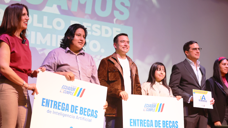 “Estas becas son para ustedes. Van a servir para los jóvenes ecuatorianos que quieren salir adelante, que quieren tener la competitividad regional suficiente para estudiar y trabajar sin ningún problema”, sostuvo el Primer Mandatario.