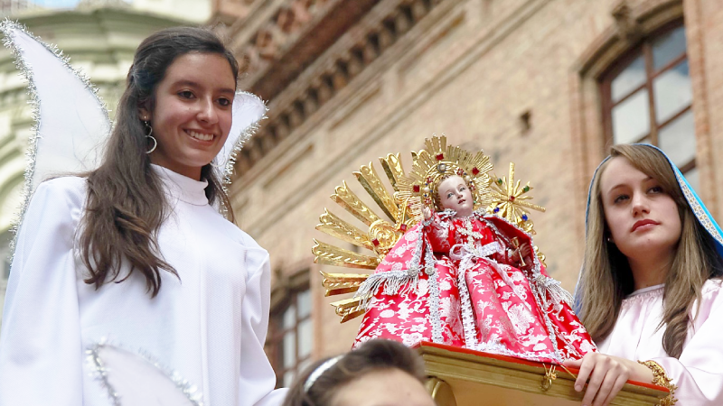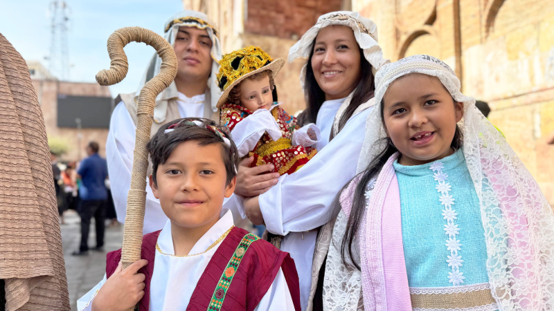 Uno de los rasgos más distintivos en la procesión es la inclusión de las infancias, quienes con trajes elaborados con sus propios medios, personifican personajes bíblicos como la Virgen María, San José, los Reyes Magos y ángeles, así como disfrazados y danzantes, tales como: mayorales, huasicamas, cuentayos, indígenas cañarejos, cholos y cholitas cuencanas, rucuyayas e interpretaciones de trajes típicos referentes a pueblos indígenas del país, evidenciando los procesos de sincretismo y religiosidad popular local.