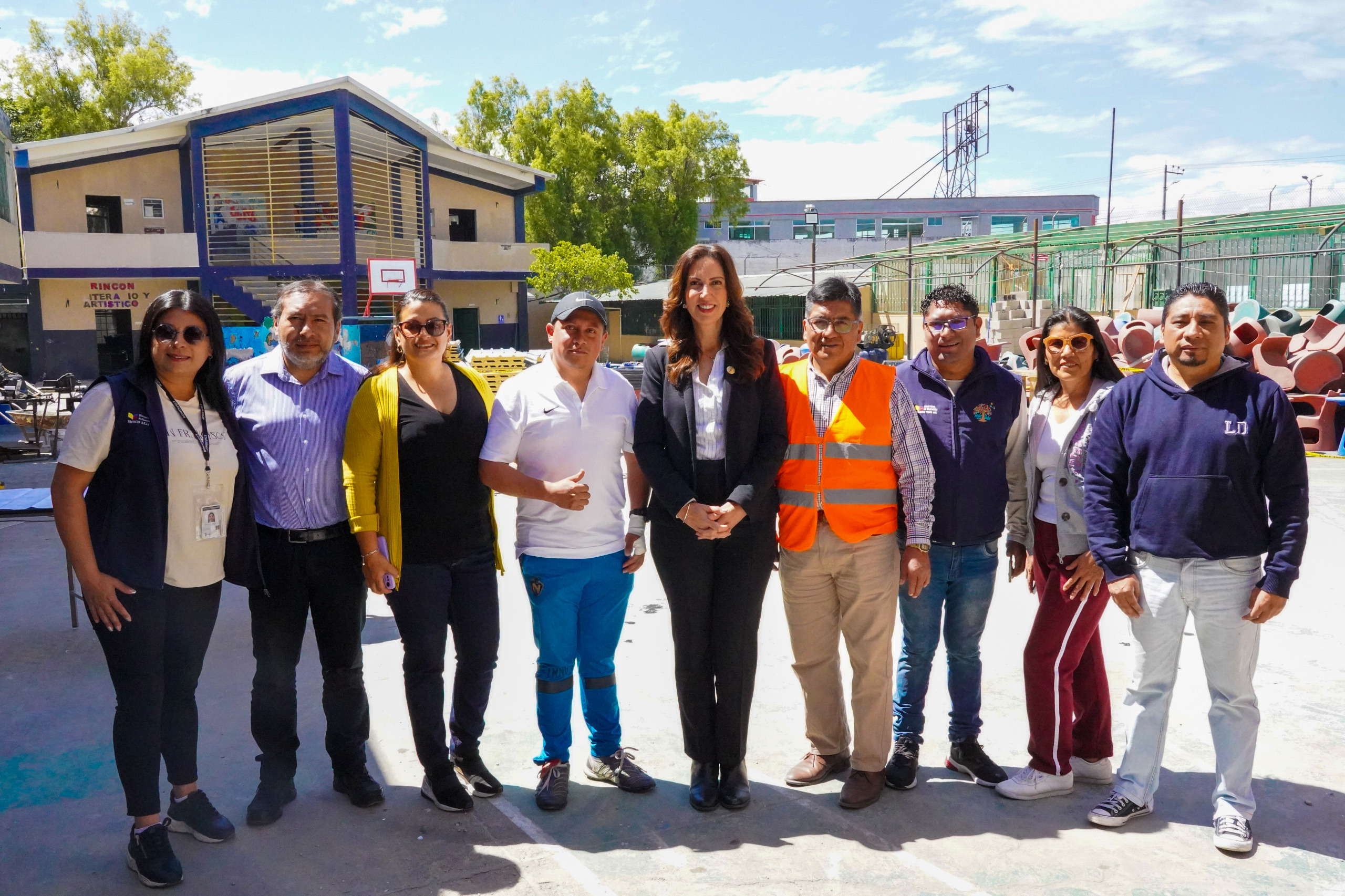 La Ministra de Educación, Alegría Crespo, realizó un recorrido para verificar el avance de los trabajos. Durante su visita, conversó con los equipos técnicos y las autoridades de las instituciones para asegurar que las intervenciones cumplan con los estándares de calidad.