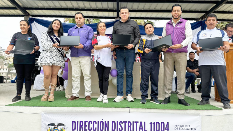 Durante el evento, también se hizo la entrega de materiales de construcción para 33 instituciones educativas. Jorge Jaramillo, director del Distrito 11D04 Educación, informó que la inversión asciende a 7.900 dólares.