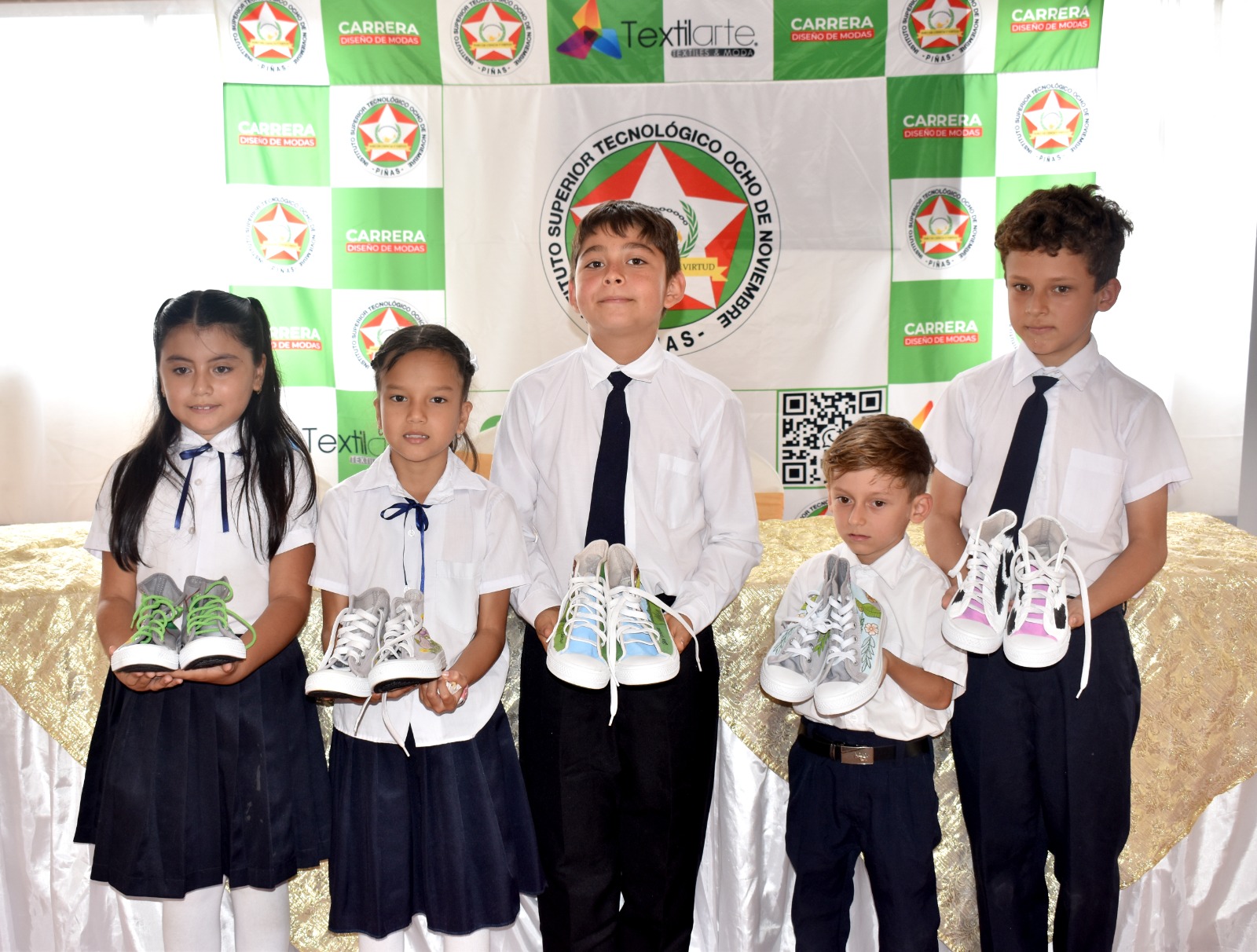 Estudiantes de Diseño de Modas del Instituto Superior Tecnológico “Ocho de Noviembre” transforman calzado en arte para niños de San Roque