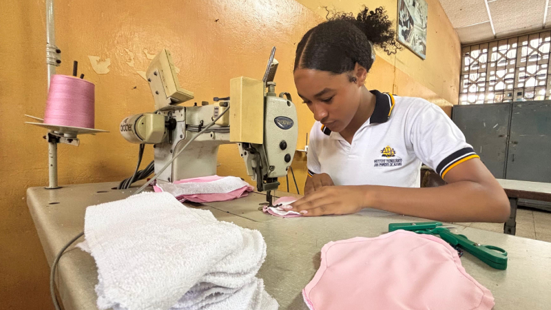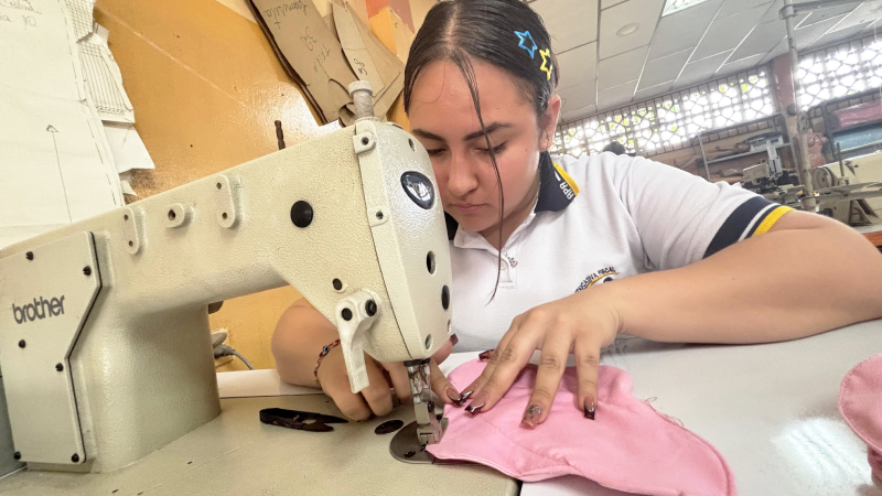 Las toallas sanitarias fueron confeccionadas por 82 estudiantes de tercero de bachillerato de la Unidad Educativa de Producción Ana Paredes de Alfaro, ubicada en el centro-sur de Guayaquil. Desde el mes de noviembre, las jóvenes trabajaron con dedicación en talleres de corte y confección, donde cada pieza fue elaborada de manera colaborativa.
