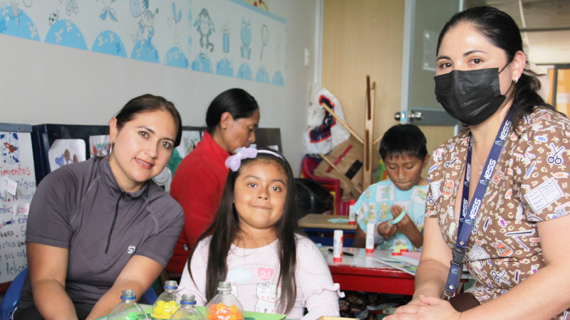 “Lo que más me gusta de las colonias vacacionales es que mi hija puede aprender con juegos y actividades educativas gracias a las docentes de las Aulas Hospitalarias”, expresó Cindy Borja, madre de una estudiante beneficiaria.