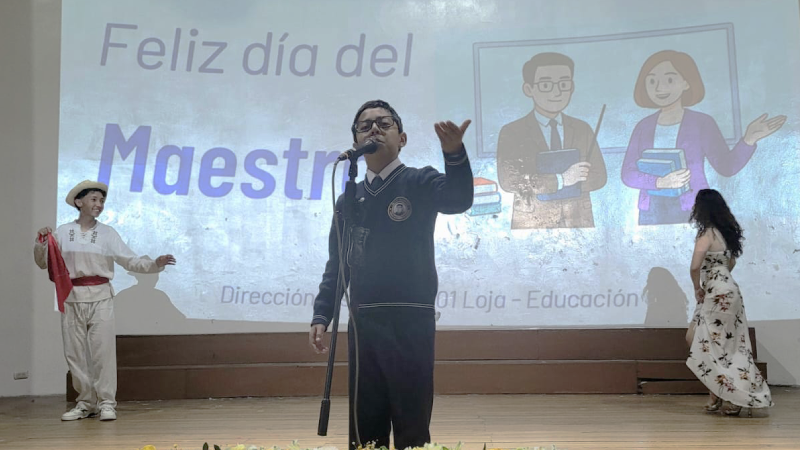 El acto concluyó con la lectura de la carta a los maestros lojanos a cargo de Maroly Guayllas, funcionaria del Distrito Loja. “El camino de la enseñanza no es fácil, pero el amor por su vocación y el deseo de transformar la vida de sus estudiantes son su mayor motor. El impacto que tienen en nuestras generaciones es invaluable, pues ustedes son los que construyen el futuro del país, un estudiante a la vez”.