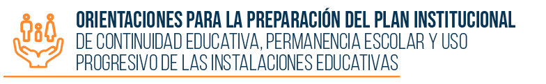 El Plan Institucional prioriza la continuidad educativa y la permanencia escolar de todos los estudiantes. Para su implementación observa las condiciones mínimas para el uso progresivo de las instalaciones educativas y aplica las recomendaciones presentadas en el presente Plan de continuidad educativa, permanencia escolar y uso progresivo de las instalaciones educativas.