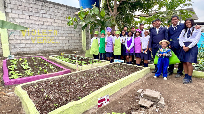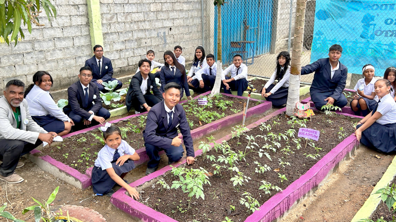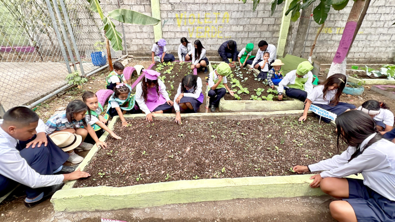 En el corazón de Monte Sinaí, al noroeste de Guayaquil, el verdor de lechugas, pepinos, pimientos, remolachas, rábanos, plantas de mango, papaya y muchas otras especies brota del huerto escolar “Violeta Verde”, de la Unidad Educativa Fiscal Violeta Luna Carrera. En este espacio, los estudiantes siembran algo más que vegetales: cultivan conciencia ambiental, hábitos alimenticios saludables y una profunda conexión con la tierra.