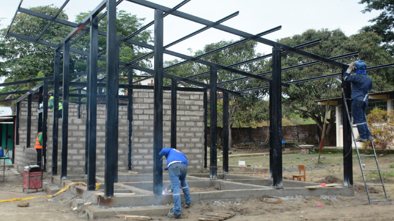 Las obras abarcan los bloques 1, 2, 3 y 4 e incluyen la construcción y mantenimiento de baterías sanitarias, nuevas aulas, mantenimiento de canchas de uso múltiple, aceras y bordillos, intervención del sistema eléctrico interno y externo, mejoras al sistema hidrosanitario, construcción de cerramientos, adquisición de juegos infantiles y mantenimiento integral de aulas y servicios sanitarios existentes, permitiendo contar con espacios educativos seguros, funcionales y adecuados para el aprendizaje.
