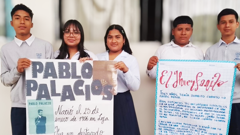 Por su parte, el estudiante Alex Suárez compartió su entusiasmo: “Recordamos a Pablo Palacio, cuya voz perdura en la historia a través de sus obras. En nuestras aulas, la lectura se fortalece y cobra vida cada día”.