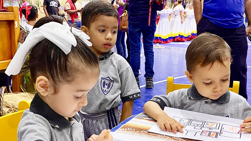 Más de 250 estudiantes, docentes y padres de familia de 30 instituciones educativas participaron en la Feria Educativa “Un Espacio para la Educación Inicial”, realizada en la Unidad Educativa Cristo Rey de Portoviejo como parte de la campaña nacional que impulsa el acceso y permanencia de niñas y niños de 3 y 4 años en el sistema educativo.