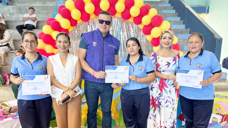 Más de 250 estudiantes, docentes y padres de familia de 7 instituciones educativas participaron en la Feria Educativa “Un Espacio para la Educación Inicial”, realizada en el Coliseo de la Unidad Educativa Fiscomisional Marista de Macará, provincia de Loja como parte de la campaña nacional que impulsa el acceso y permanencia de niñas y niños de 3 y 4 años en el sistema educativo.