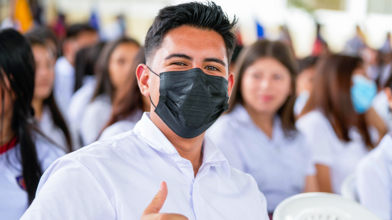 En la ceremonia, subrayó el firme compromiso del Gobierno Nacional con una educación que sea gratuita, segura, inclusiva y de excelencia.
