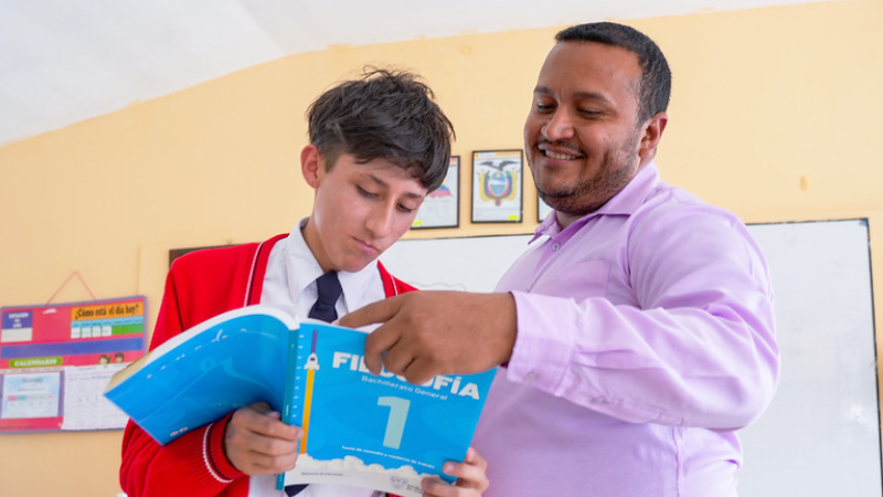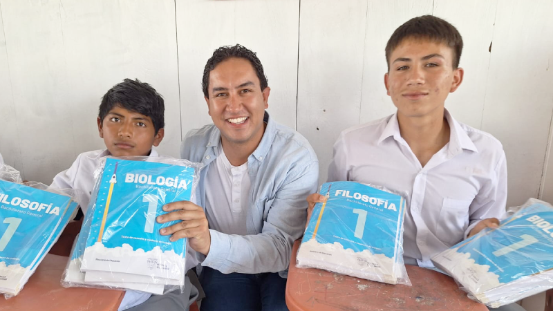Por su parte, Sebastián Flores, estudiante de la Unidad Educativa Nanegalito, expresó: “Los textos escolares son una herramienta muy valiosa para fortalecer nuestros aprendizajes en las aulas. Nos ayudan a comprender mejor los temas y a prepararnos para alcanzar nuestros sueños”.