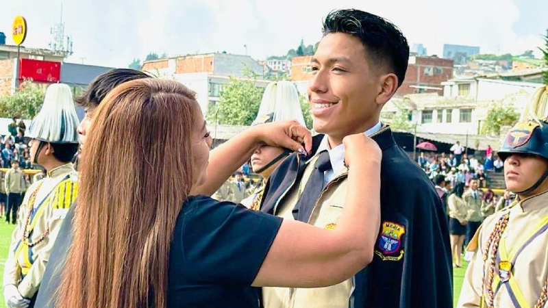 Wilmer Toapanta, rector de la Unidad Educativa Mejía, destacó el compromiso de los padres de familia por acompañar a sus hijos desde el primer día de clases. “Este día rendimos homenaje a la promoción de graduados, jóvenes que pusieron todo su esfuerzo, dedicación, disciplina y respeto para conseguir este logro”, acotó.