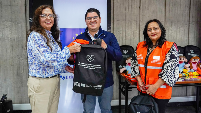 En total se entregaron 210 mochilas a las nueve zonas educativas, 140 direcciones distritales y 60 instituciones educativas priorizadas donde se ejecuta el proyecto “Horizontes Seguros”. Se trata de un recurso clave para facilitar la contención emocional, acompañamiento grupal y aplicación de primeros auxilios psicológicos en contextos de crisis.