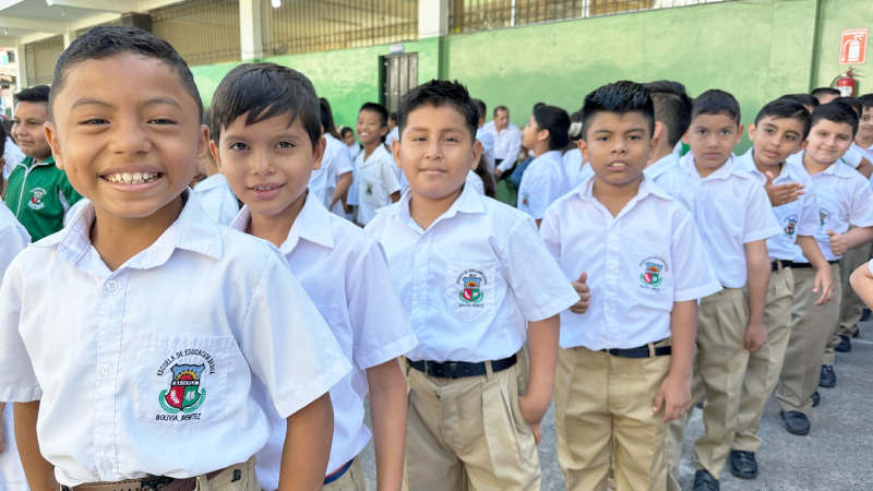 Alex Chiroque, estudiante de la escuela Bolivia Benítez, mostró su alegría por la remodelación del bloque de aulas. “Quiero decir gracias sinceras por los espacios renovados para los niños de Educación Inicial. Este lugar se ve ahora más bonito y eso significa que ustedes creen en nuestro futuro”.
