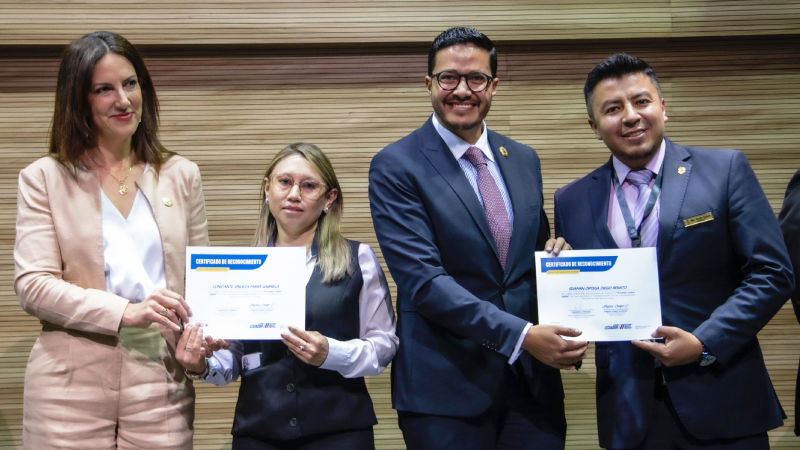 Durante la ceremonia también se anunció la continuidad del Programa “Ecuador Habla Inglés” bajo una modalidad híbrida, que permitirá fortalecer las habilidades lingüísticas y la aplicación práctica del idioma en contextos educativos específicos, asegurando una formación integral y adaptada a las nuevas exigencias pedagógicas. Esta modalidad mixta busca optimizar el tiempo y los recursos de los docentes, brindándoles herramientas más efectivas para su actualización profesional.