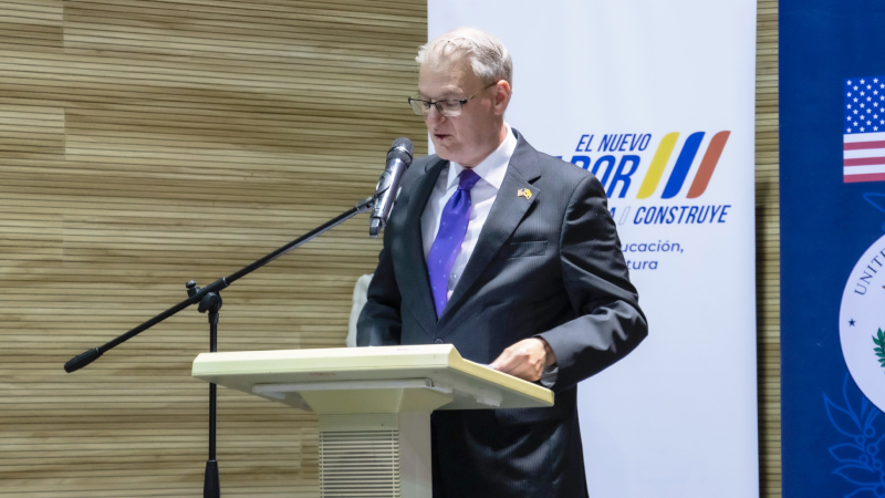 El acto contó con la presencia de la ministra de Educación, Deporte y Cultura, Alegría Crespo; Lawrence Petroni, Chargé d’Affaires a.i. de la Misión Diplomática de Estados Unidos en Ecuador; así como autoridades del ministerio y de la embajada, quienes destacaron la importancia de la cooperación internacional para potenciar el aprendizaje del inglés y reafirmaron el compromiso del Gobierno estadounidense como socio principal del Ecuador en el ámbito educativo.