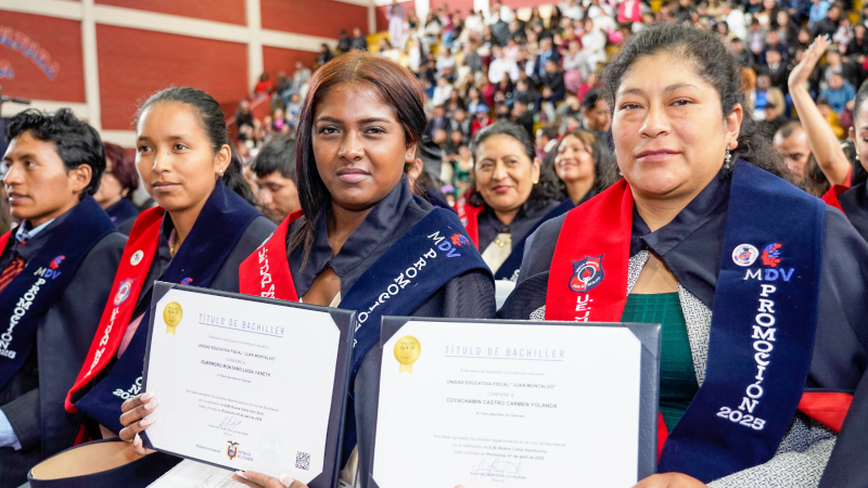 Con mucho entusiasmo, en la Unidad Educativa Fiscal Juan Montalvo de Quito se realizó un emotivo evento para los estudiantes de la modalidad a Distancia – Educación Virtual. En esta ocasión, 290 jóvenes, adultos y adultos mayores con escolaridad inconclusa celebraron su incorporación como nuevos bachilleres. Además, por primera vez, se graduaron 10 personas sordas usuarias de lengua de señas, demostrando que la educación inclusiva avanza y llega a todos.