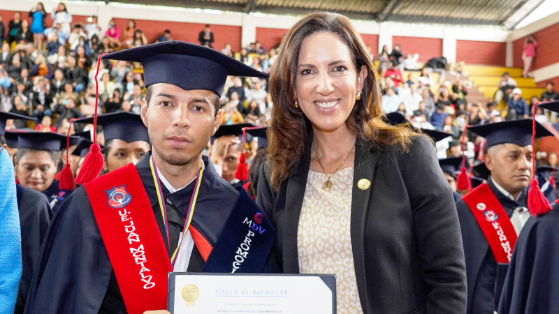 Este importante evento contó con la presencia de la ministra de Educación, Alegría Crespo, quien compartió momentos especiales con los nuevos bachilleres, sus familias, docentes y autoridades educativas. La titular de esta cartera de Estado resaltó que nunca es tarde para retomar los estudios y cumplir sueños académicos, recordando que la educación es un derecho que puede ejercerse en cualquier etapa de la vida.