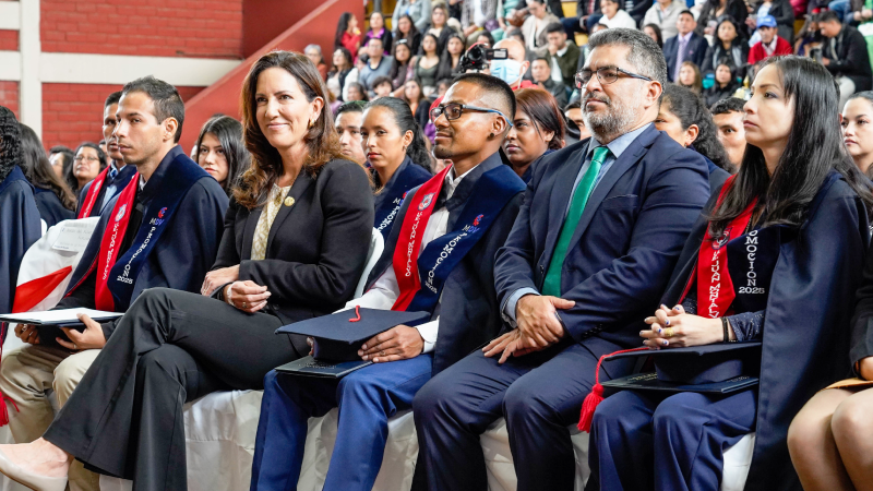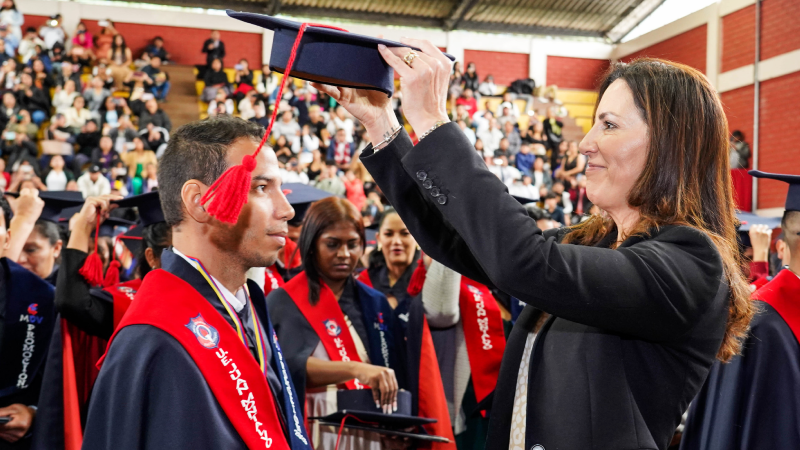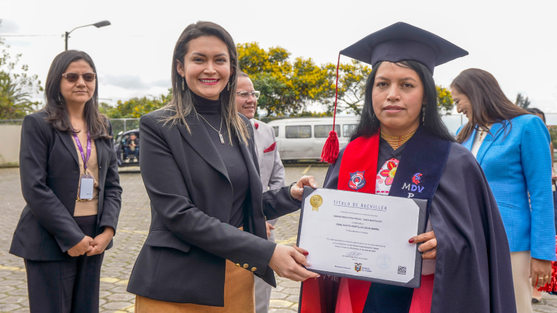“Hoy no es una graduación cualquiera. Juntos escribimos una página nueva, luminosa y valiente en la historia del Ecuador. Estamos celebrando a la primera promoción de estudiantes sordos en situación de escolaridad inconclusa que culminan su Bachillerato”, señaló la ministra Crespo.