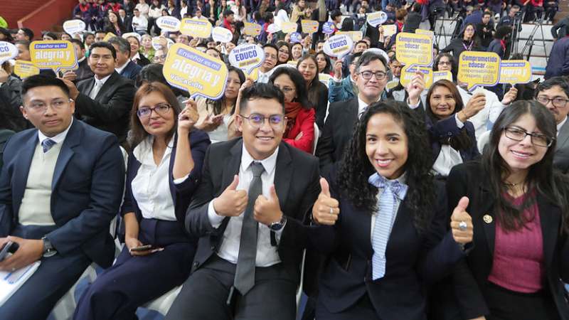 Este 27 de enero, 789 docentes se integraron al sistema educativo nacional. El presidente Daniel Noboa Azin lideró la oficialización de sus nombramientos obtenidos mediante el Concurso de Méritos y Oposición para Bachillerato General, en un evento realizado en la Unidad Educativa Juan Montalvo, en Quito.