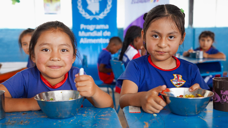 Actualmente, el programa de alimentación escolar que desarrolla el Ministerio Educación junto al PMA, organismo del sistema de las Naciones Unidad, ha beneficiado a niñas, niños y jóvenes de 186 unidades educativas de 24 cantones del país. El abastecimiento proviene de productores locales, quienes entregan anualmente alrededor de 2.000 toneladas de alimentos frescos.