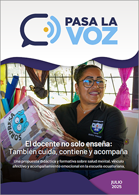 La revista mensual digital PASA LA VOZ, da a conocer temas educativos, investigativos y de actualidad, para lograr generar interés en los docentes de Educación Inicial y Básica mediante la trasmisión de metodologías, técnicas y experiencias de aprendizaje innovadoras, publicando artículos alineados a la estructura de los ejes de desarrollo y de aprendizaje que propone el Currículo.