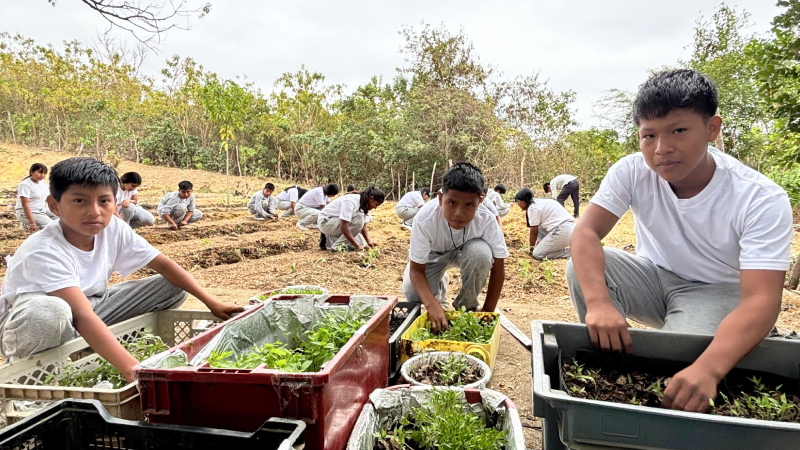 Un claro ejemplo de este compromiso se vive en la Unidad Educativa Fiscal Réplica Guayaquil, ubicada al Sur de Guayaquil, donde en su huerto escolar se han cultivado una gran variedad de productos como yuca, plátano verde, piñas, papayas, limones ajíes e incluso plantas medicinales y pronto empezarán el cultivo de cacao.  Lo más enriquecedor de esta experiencia es que, con el acompañamiento de los docentes, los 688 estudiantes del plantel participan activamente en la cosecha y posterior preparación de alimentos: tortillas, dulces, jugos naturales y otras recetas saludables que luego son compartidas y consumidas en la institución.