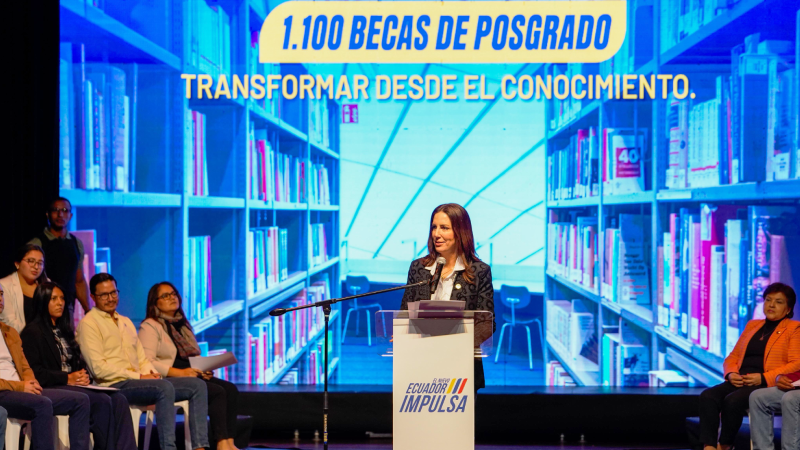 Desde el Teatro de Artes Escénicas Pumapungo, en Cuenca, el presidente Daniel Noboa Azin anunció la entrega de 1.100 becas de posgrado del programa “Transformar desde el Conocimiento”. El evento se llevó a cabo este 11 de septiembre en presencia de becarios y de otras autoridades nacionales, locales y académicas.