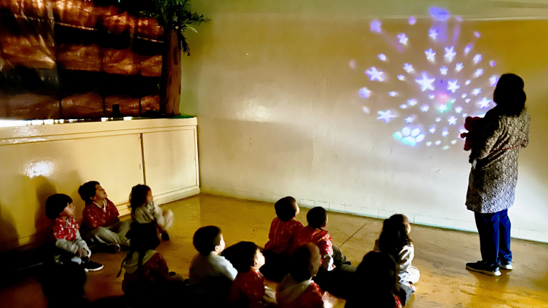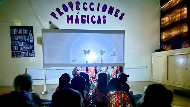 Este nuevo rincón de aprendizaje forma parte de un enfoque basado en la exploración sensorial, la creatividad y la experimentación. A través de un proyector, una pantalla blanca, linternas y plantillas para hacer sombras, los niños pueden aprender sobre animales, señales de tránsito, emociones, alimentación saludable y otros temas clave para su desarrollo.