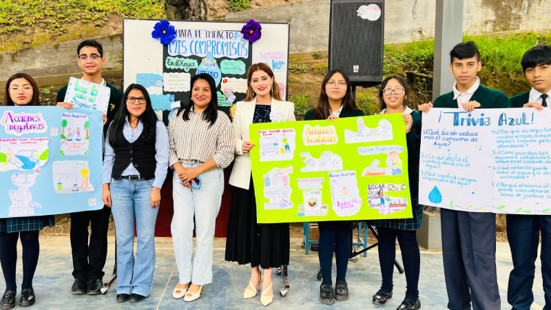 El evento contó con la participación de María José Moyano, subsecretaria de Educación, Deporte y Cultura de Quito. “Cada acción cuenta para el cuidado del agua, y es fundamental que desde la comunidad educativa se promueva una conciencia responsable sobre su uso y conservación”, destacó.