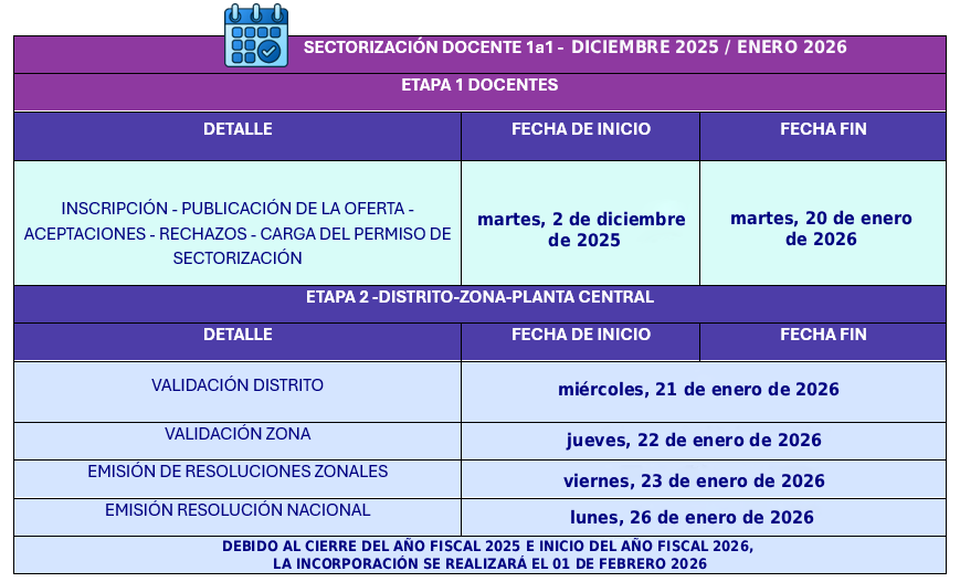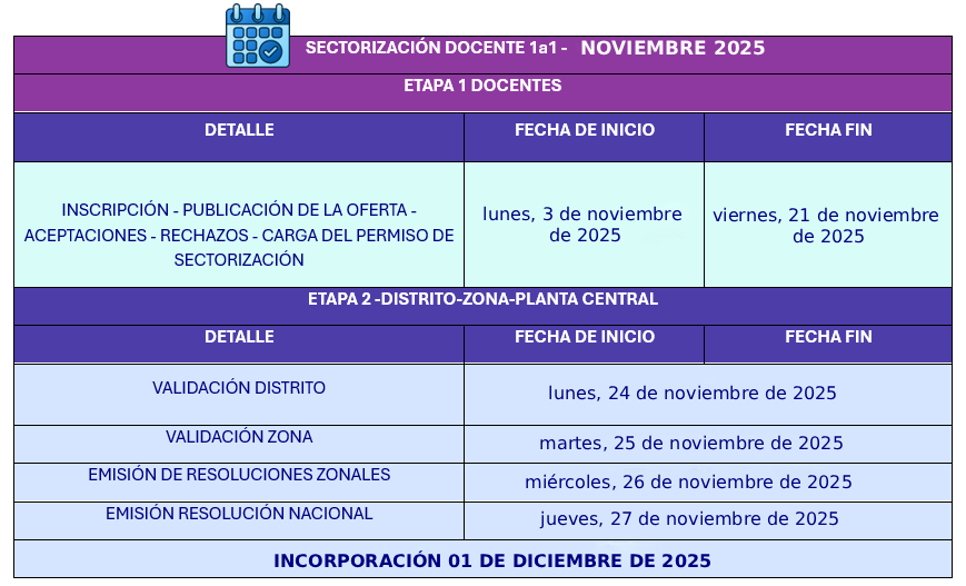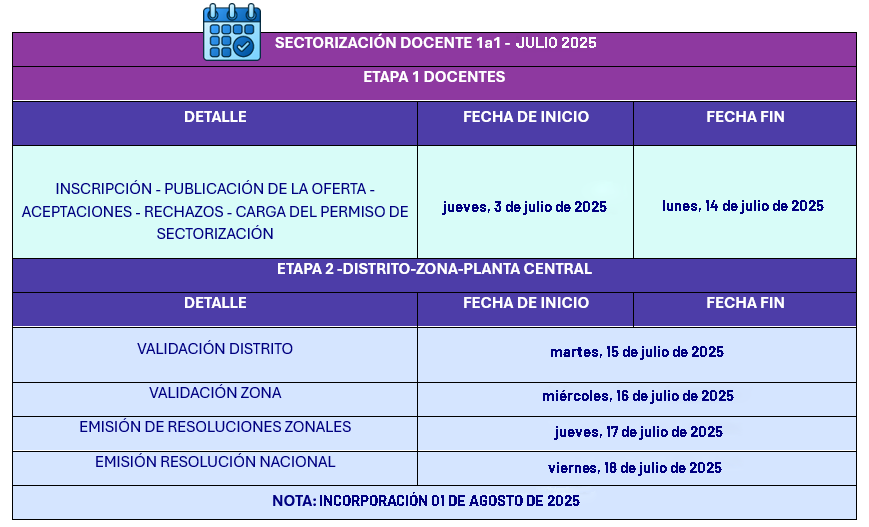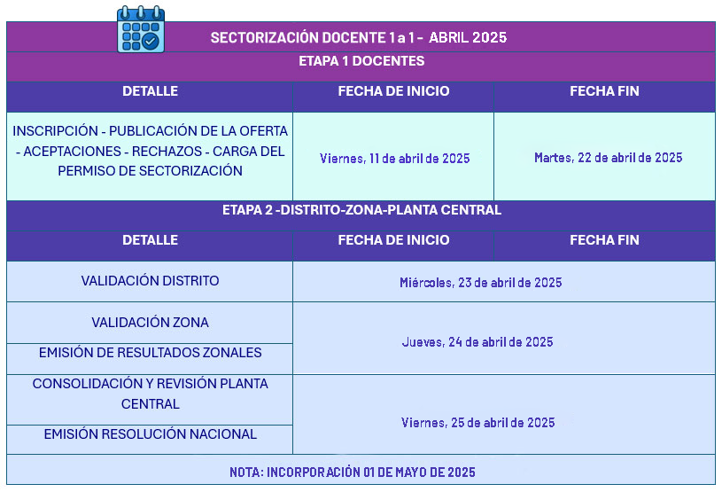 La carga del permiso de Sectorización en el sistema se realiza una vez confirmadas las respectivas aceptaciones y representa el documento de respaldo del accionar del docente en el sistema. Realizada la carga, se continúa con la oficialización de los docentes beneficiados y finalmente el traslado de cada docente a su respectiva Institución Educativa.
