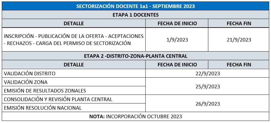 La carga del permiso de Sectorización en el sistema se realiza una vez confirmadas las respectivas aceptaciones y representa el documento de respaldo del accionar del docente en el sistema. Realizada la carga, se continúa con la oficialización de los docentes beneficiados y finalmente el traslado de cada docente a su respectiva Institución Educativa.